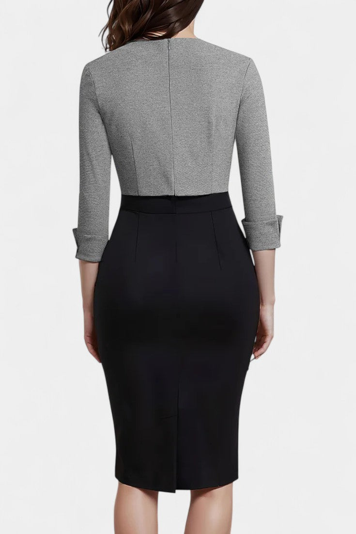 Maria Robe Midi Tailleur Bicolore à Ceinture Cercle