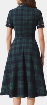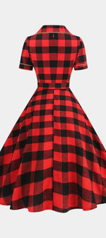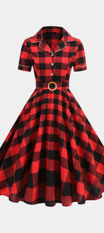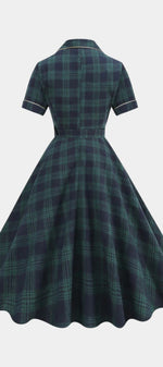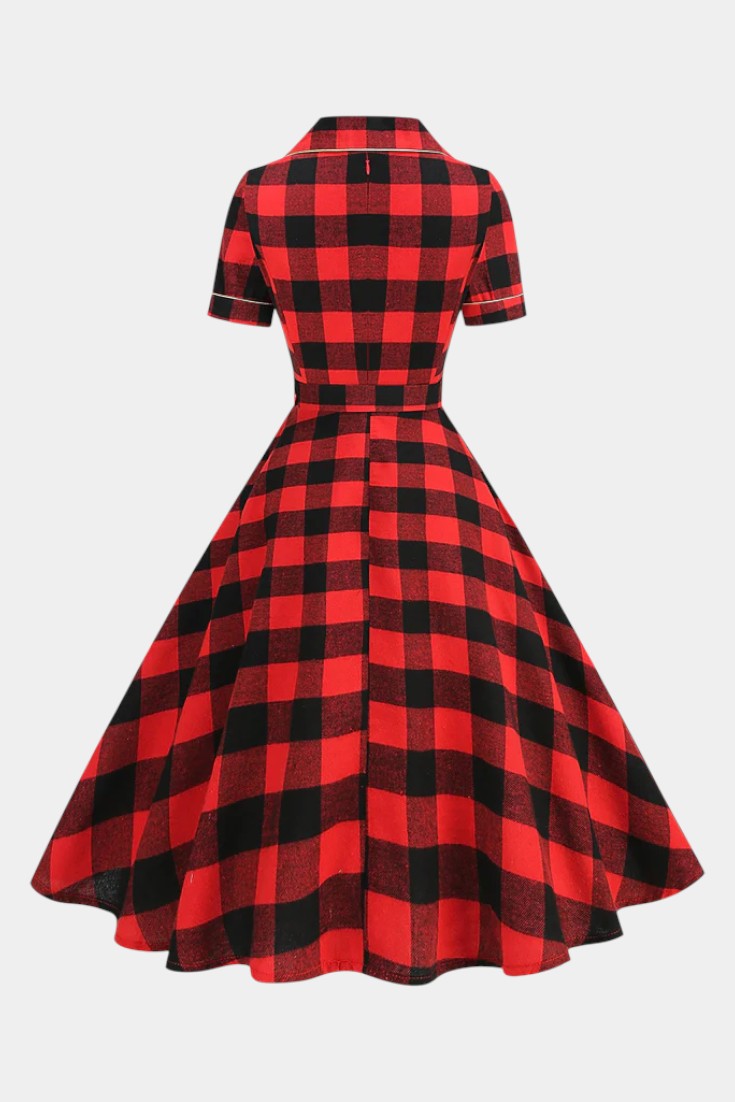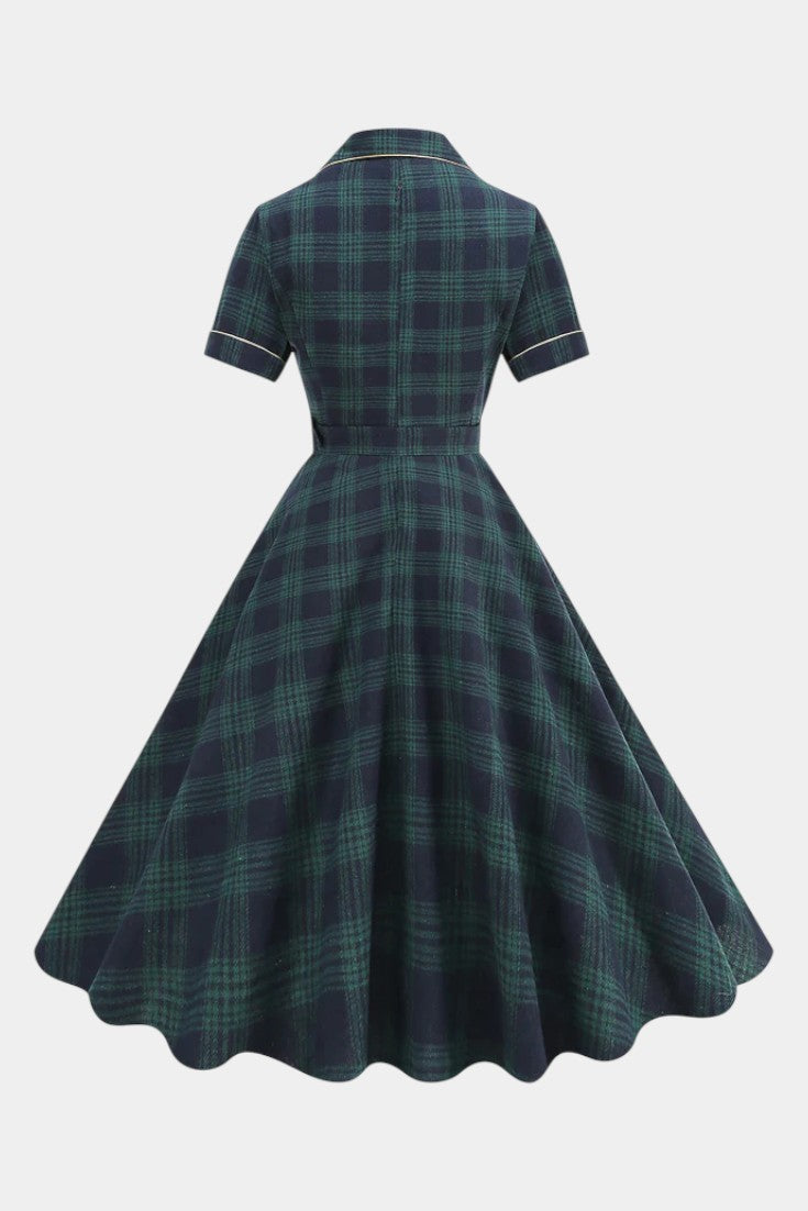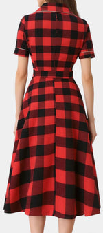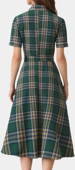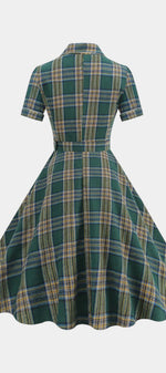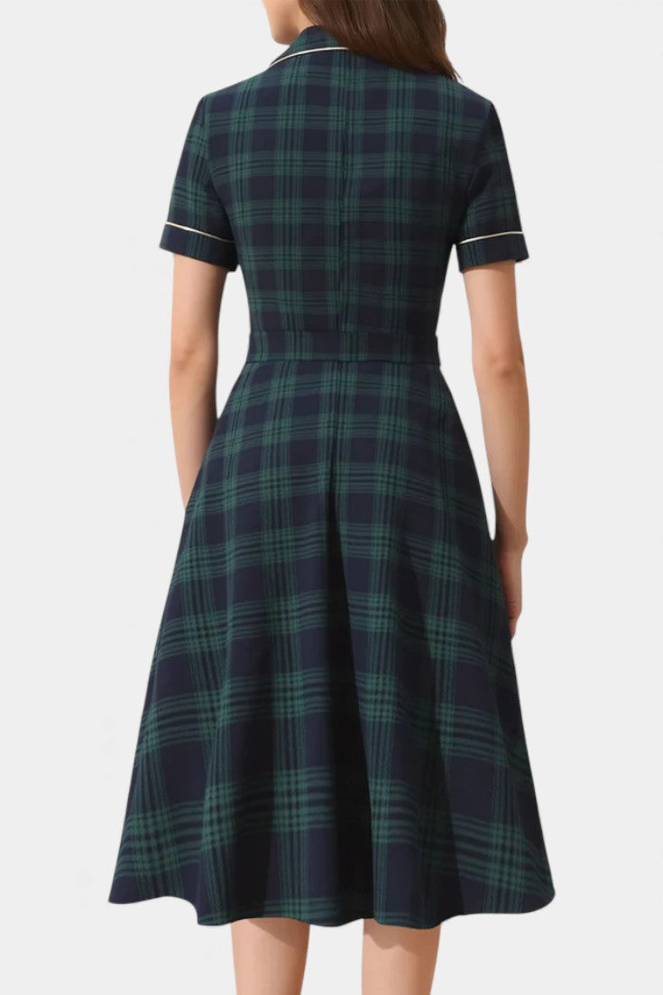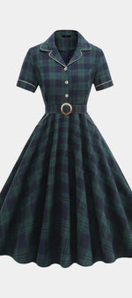 Lylas Robe Midi Vintage à Carreaux avec Revers Tailleur, Poches et Ceinture
