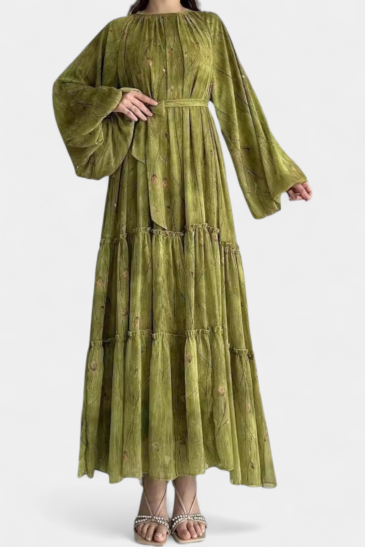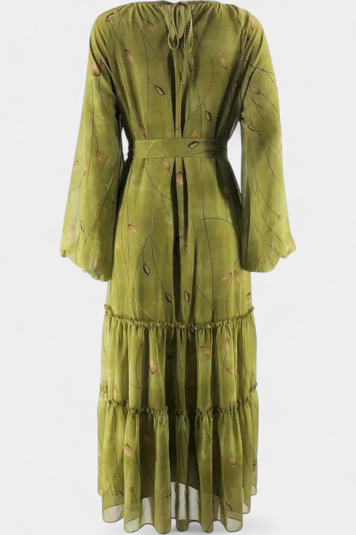 Tavira Robe Fleurie Ceinturée à Volants et Manches Longues