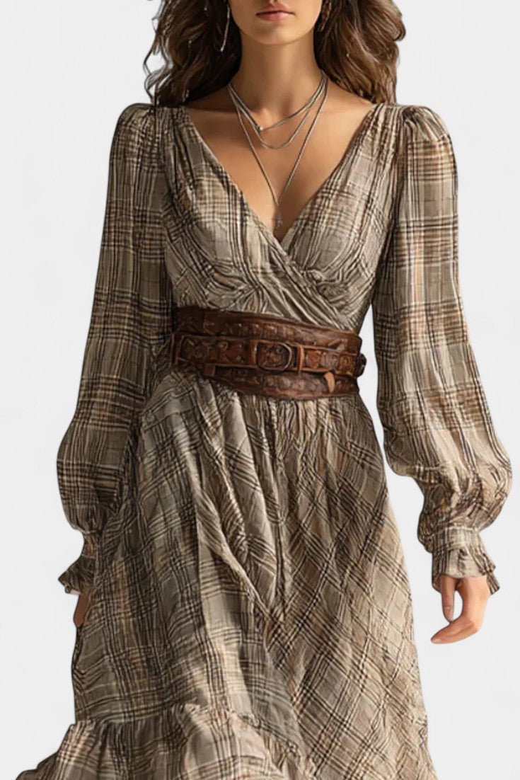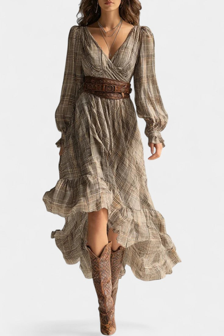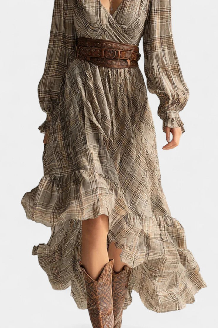 Thandie Robe Bohème en Chiffon à Carreaux et Détails Volantés