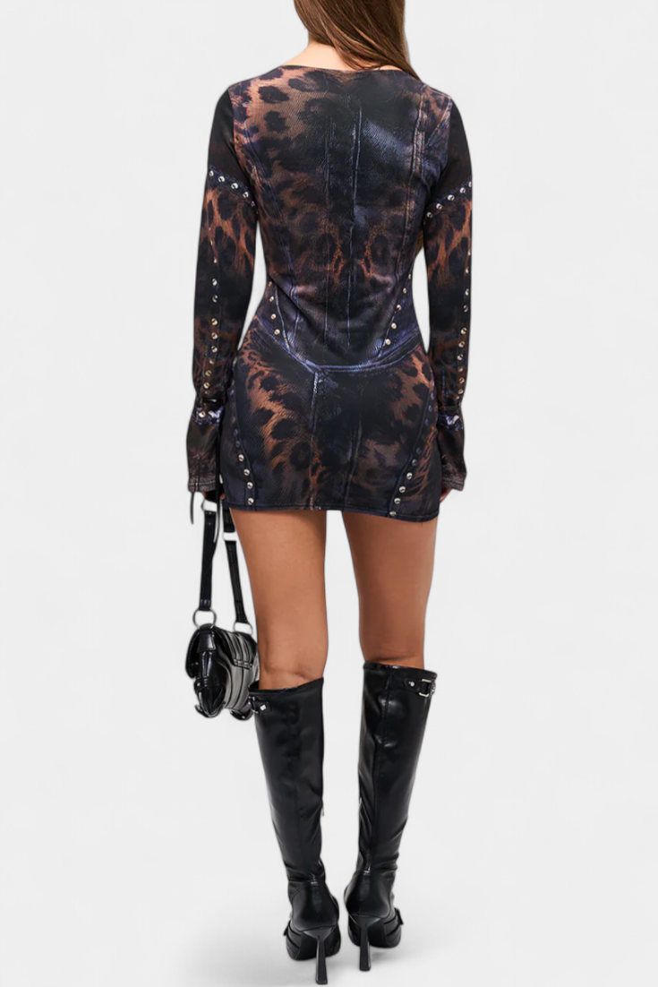 Tiana Robe Midi à Imprimé Léopard et Corset Bustier Sculptant