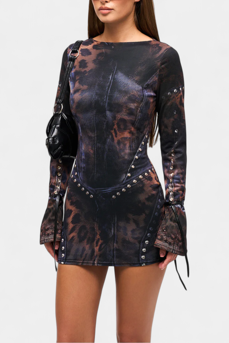 Tabea Robe Ajustée à Imprimé Illusion et Manches Évasées