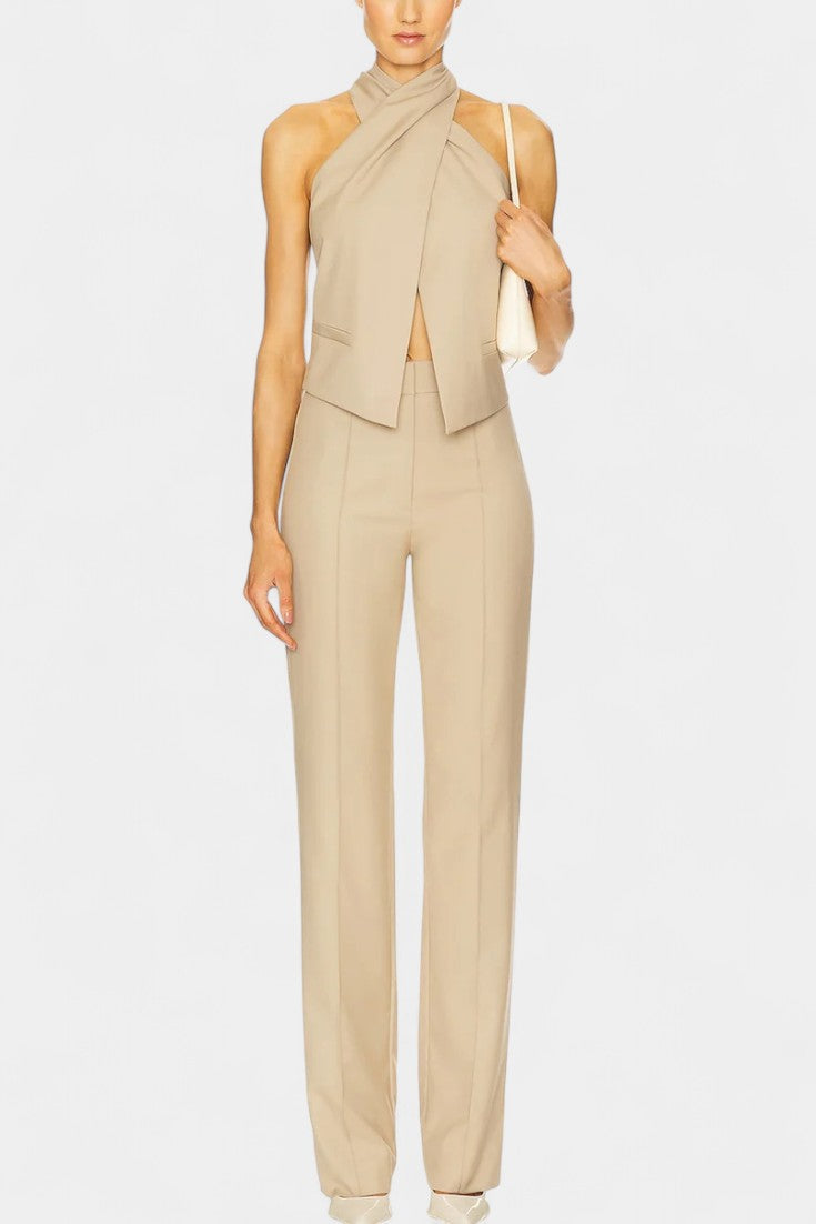 Somina Ensemble à Bretelles Croisées avec Pantalon Droit Élégant
