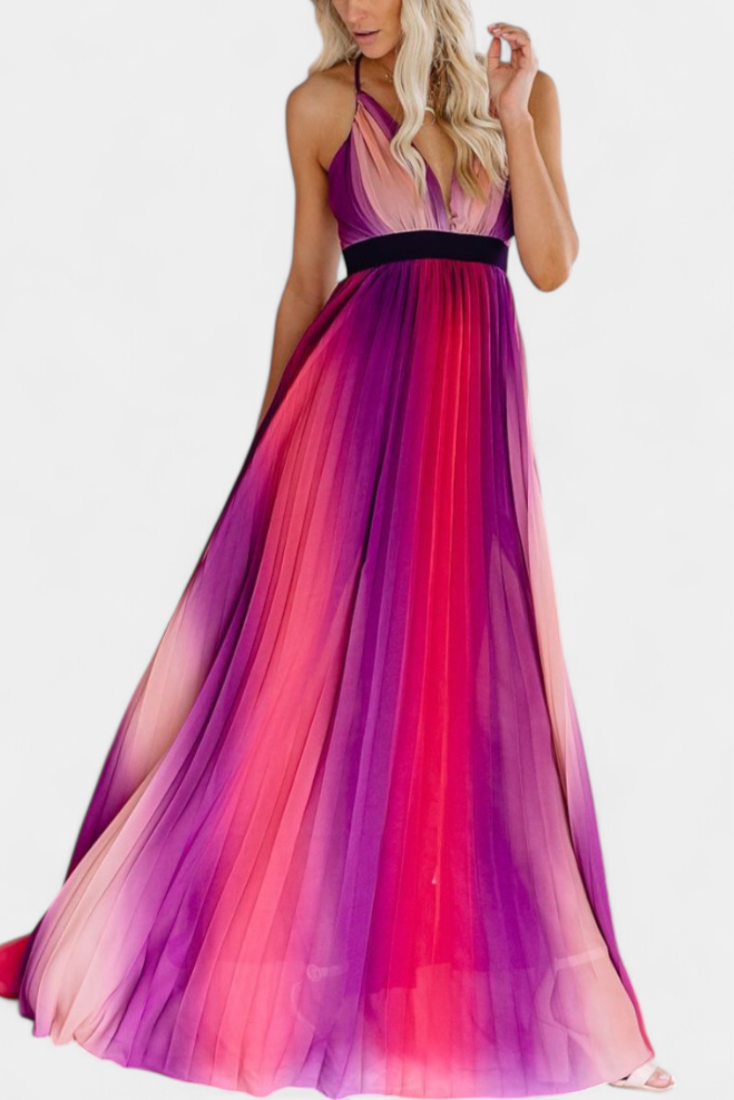 Cecilia Robe Plissée à Décolleté V et Dos Nu avec Bretelles Croisées et Dégradé Vibrant