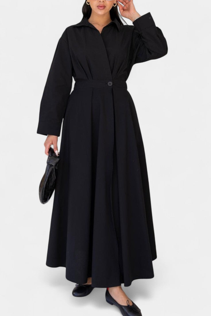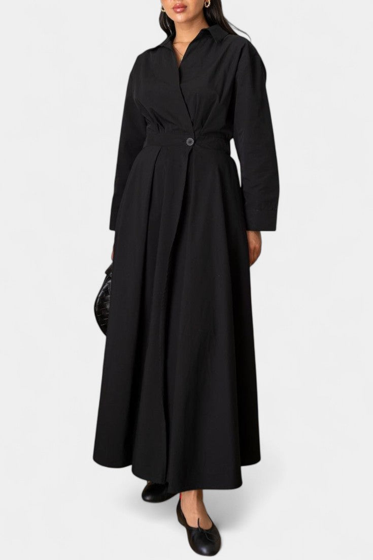 Celina Robe à Col Revers Structuré et Taille Cintrée