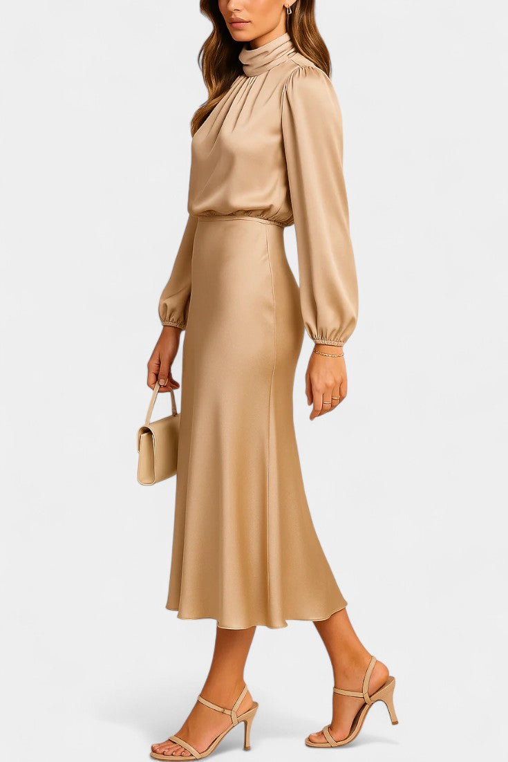 Charliane Robe à Col Montant Structuré et Taille Cintrée Élégante