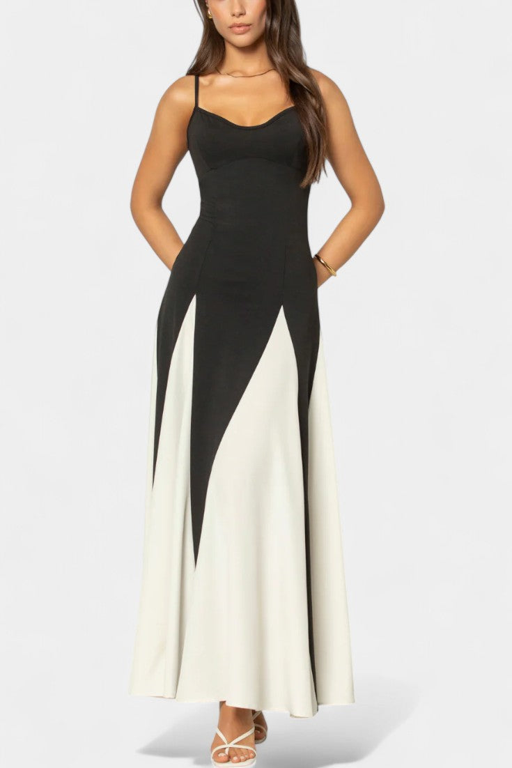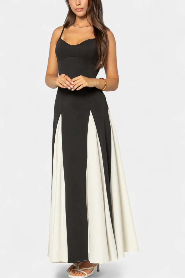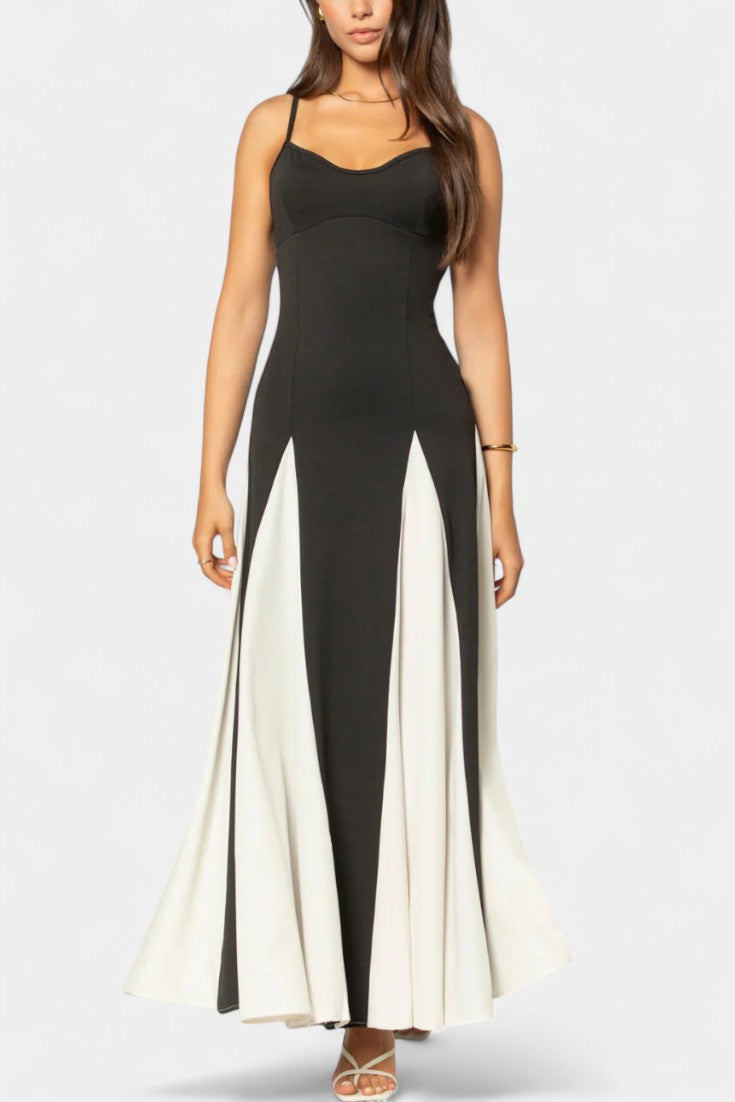 Catalina Robe Bicolore à Corsage Ajusté et Jupe Maxi Fluide