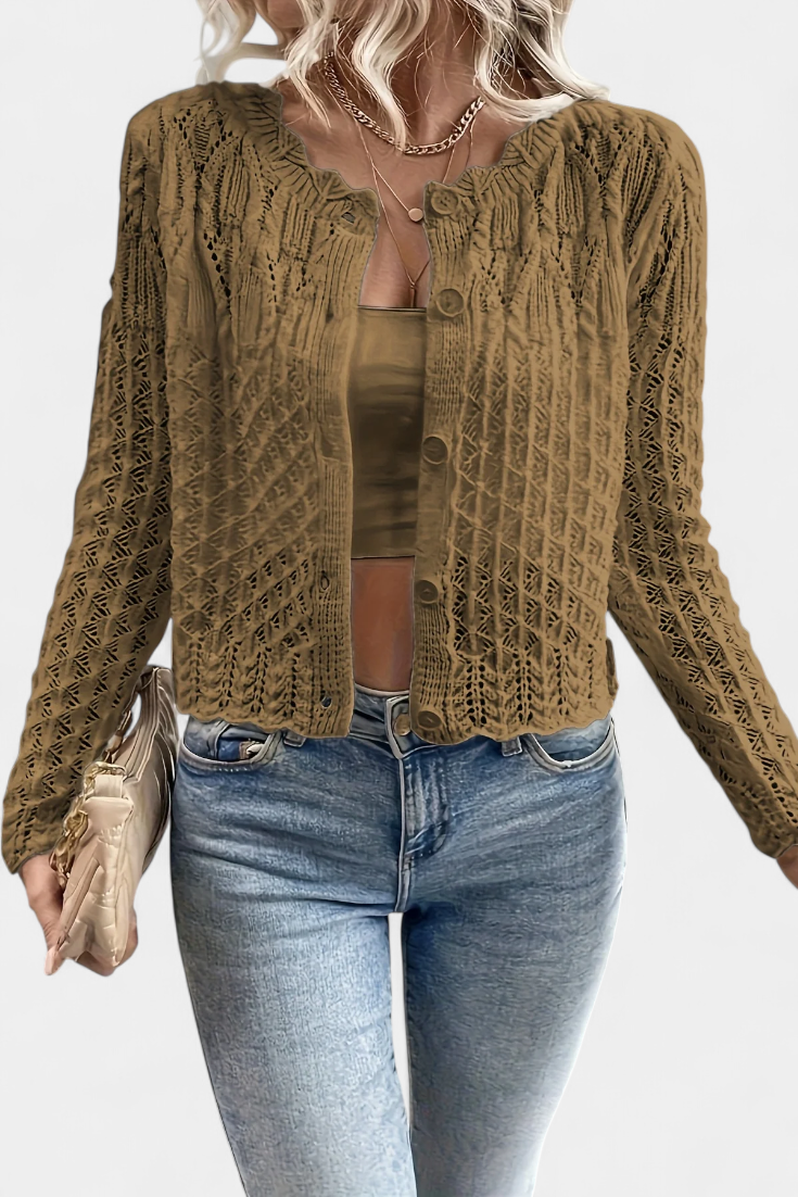 Chenda Cardigan Court en Peluche avec Boutons et Détails Côtelés