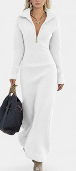 Chaleureuse et épurée, la robe Henriette revisite le fleece avec une silhouette slim moderne. Son tissu doux et confortable épouse délicatement le corps tandis que le zip frontal apporte une touche urbaine et contemporaine. Sa longueur maxi crée une ligne élancée, parfaite pour sublimer la silhouette tout en assurant confort et aisance. Une pièce incontournable pour les journées fraîches où style et praticité doivent aller de pair.