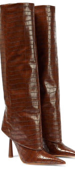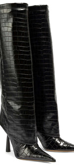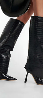 Bottes en Cuir Synthétique Crocodile à Talons Hauts et Pointe Aiguisée