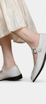 Elsa Mary Janes à Sangle en T et Finition en Cuir Artisanal
