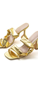 Sarah Sandales à talons hauts avec bout carré en métal froissé