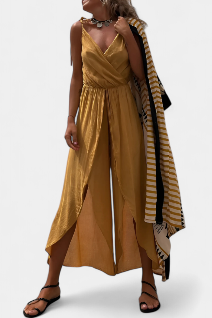 Luciana Combinaison Croisée à Taille Ajustable et Pantalon à Jambes Larges