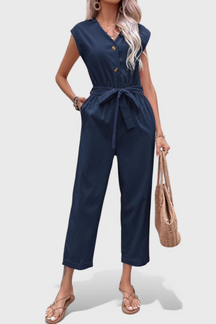 Marie Combinaison Sans Manches en Coton à Taille Nouée et Boutons Frontaux