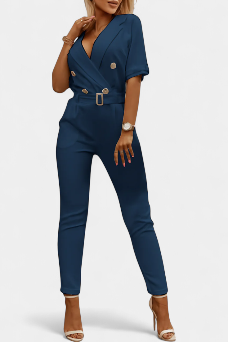 Dénéa Combinaison Chic à Col Tailleur et Détails Froncés