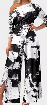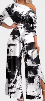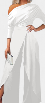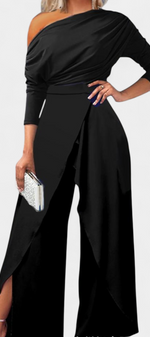 Brina Combinaison Asymétrique à Épaule Perlée et Jambe Droite