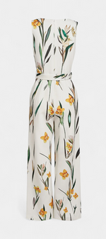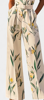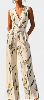 Légèreté estivale avec une silhouette alliant fraîcheur et élégance. La combinaison Slara se distingue par son décolleté en V profond et son imprimé blanc épuré, idéale pour les journées ensoleillées avec un style décontracté. Sa coupe ample et son tissu fluide permettent de bouger librement, tandis que la ceinture définit la taille avec une sophistication discrète.