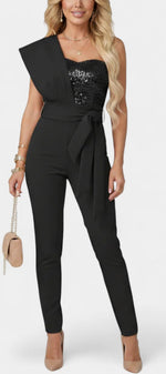 Faites une déclaration sans robe. La combinaison Layla allie un éclat festif à un confort flatteur, présentant un design distinctif à une épaule et une coupe élégante. Que ce soit pour un rendez-vous, un événement nocturne ou une sortie stylée, c'est le glamour sans effort.