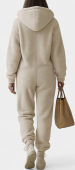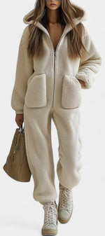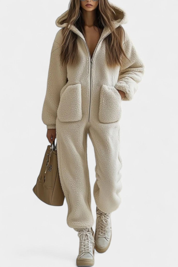 Émérance enveloppe vos journées d’une douceur irrésistible. Confectionnée dans une peluche moelleuse et légère, cette combinaison à capuche associe confort et style décontracté. Sa fermeture zippée pratique et sa coupe fluide en font une pièce idéale pour les moments cocooning, les vacances ou les sorties décontractées.