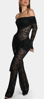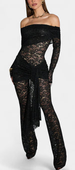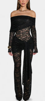 Maristella Combinaison Bardot à Dentelle Transparente et Jupe Mini Froncée