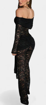 Un design qui équilibre sensualité et modernité avec un charme intemporel. Maristella met en valeur la silhouette avec un décolleté Bardot aux épaules dénudées et une coupe ajustée qui s'ouvre sur une jambe évasée stylisée. La superposition de la jupe mini froncée ajoute de la dimension et une touche sophistiquée, tandis que la dentelle transparente apporte une note de audace féminine.