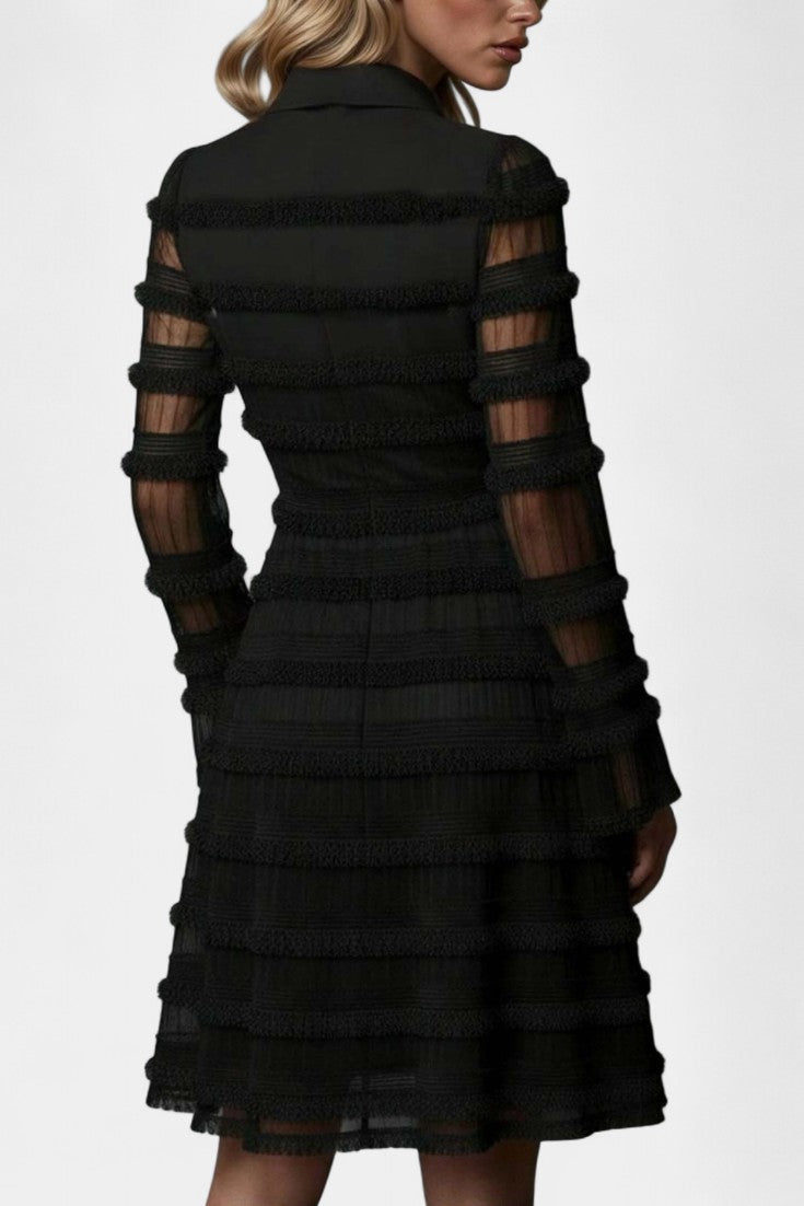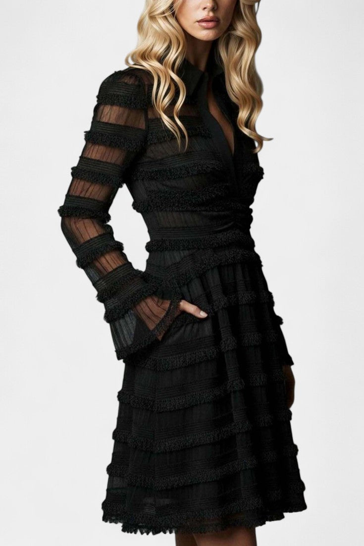 Érika Robe Courte Plissée en Velours à Manches Évasées en Dentelle