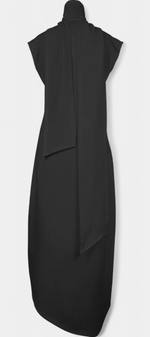 Une pièce sculpturale qui allie modernité et sophistication. La robe Aphrodite séduit par sa coupe asymétrique audacieuse et son design sans manches qui allonge naturellement la silhouette. Les boutons dorés, placés en ligne architecturale, ajoutent une touche luxueuse et lumineuse, faisant de cette robe un véritable statement. Confectionnée dans un tissu léger et structuré, elle offre un tombé impeccable à chaque mouvement.