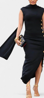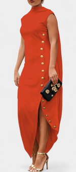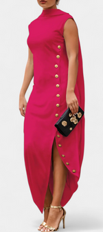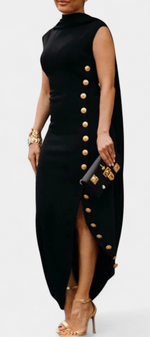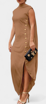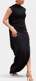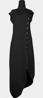 Aphrodite Robe Asymétrique Sans Manches à Boutons Dorés