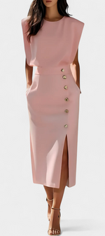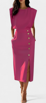 Ceecee Robe Midi Unie à Boutons Décoratifs