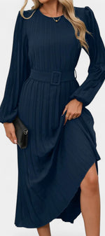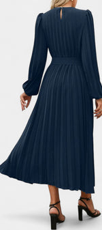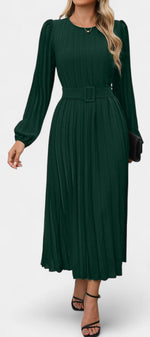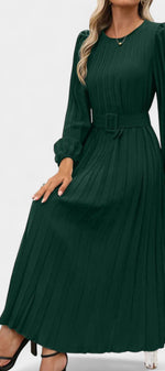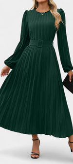 Christelle Robe Longue Plissée à Manches Bouffantes et Ceinture