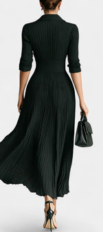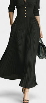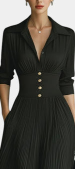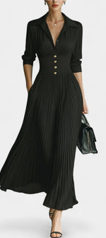 Une robe à l’allure naturellement raffinée, pensée pour sublimer la silhouette avec équilibre et élégance. Fébronie se distingue par son col à revers structuré et sa jupe plissée fluide qui accompagne chaque mouvement avec grâce. La taille délicatement marquée apporte une définition subtile, tandis que la longueur longue renforce son caractère féminin et intemporel.