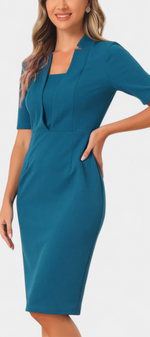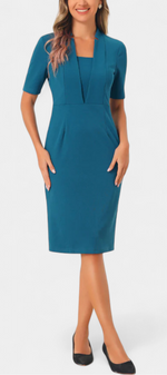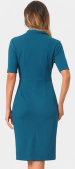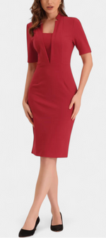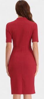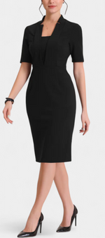 Raphaëlle Robe Crayon Formelle à Col en V et Manches Courtes
