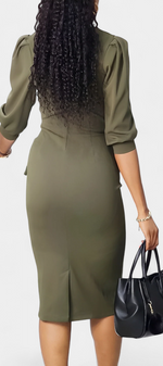 Reanna Robe Midi Ajustée à Manches Bouffantes