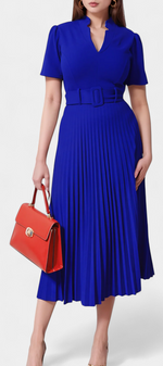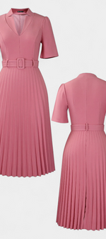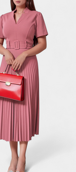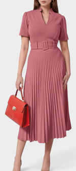 Seliora Robe Midi Cintrée à Ceinture et Jupe Plissée