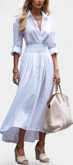Une robe lumineuse et parfaitement équilibrée, pensée pour incarner une élégance naturelle et affirmée. Yésica séduit par sa coupe chemise structurée, son col ouvert délicat et sa taille subtilement marquée qui met en valeur la silhouette avec justesse. La jupe fluide apporte mouvement et légèreté, créant une allure féminine, moderne et résolument chic. Une pièce intemporelle qui traverse les saisons avec aisance.