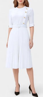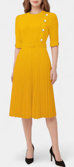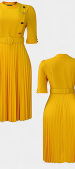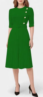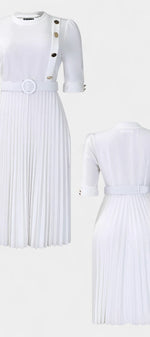 Zandie Robe Plissée Élégante à Boutons Décoratifs