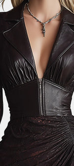 Audacieuse et raffinée, la robe Alunna mêle l’allure rétro du simili-cuir à la délicatesse de la dentelle pour créer une silhouette saisissante. Sa taille plissée et structurée souligne élégamment la ligne du corps, tandis que les manches longues et la coupe maxi apportent un charme théâtral et haut de gamme. Parfaite pour celles qui souhaitent afficher un style affirmé avec une touche de sophistication moderne.
