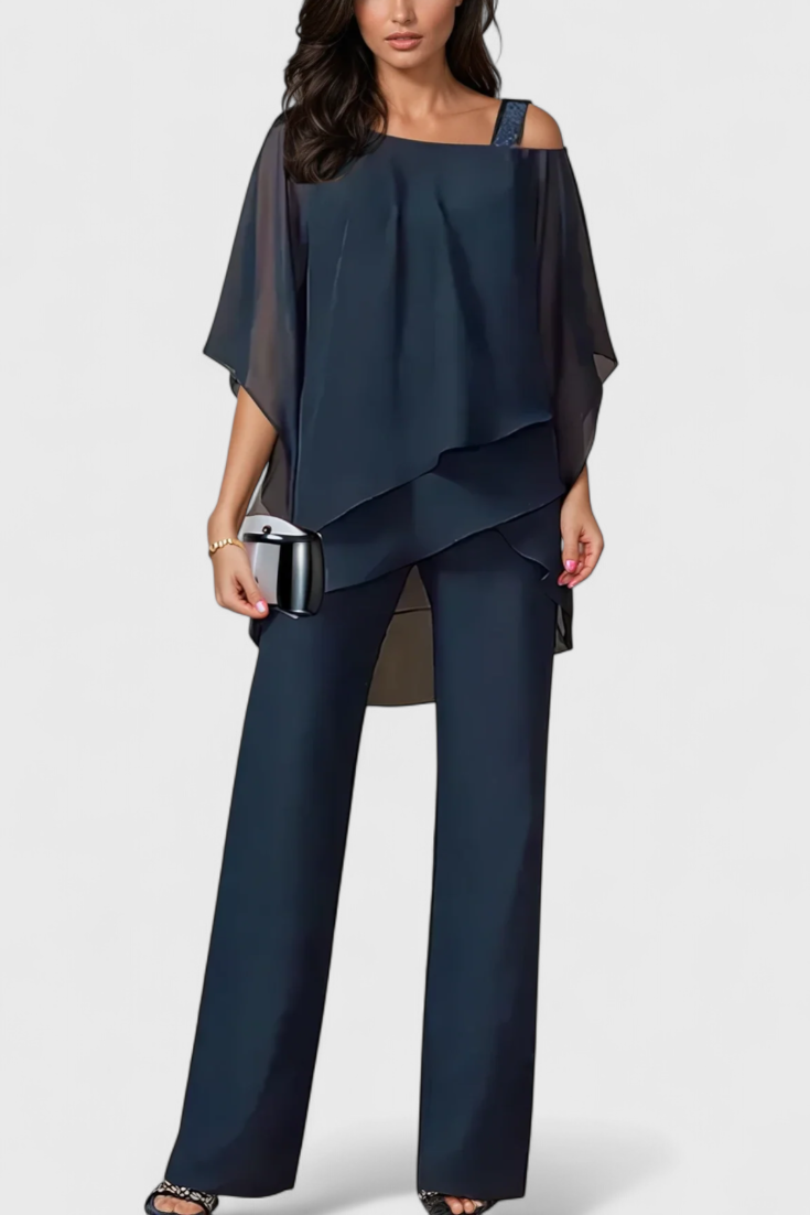 Énélya Ensemble Décontracté en Velours Asymétrique