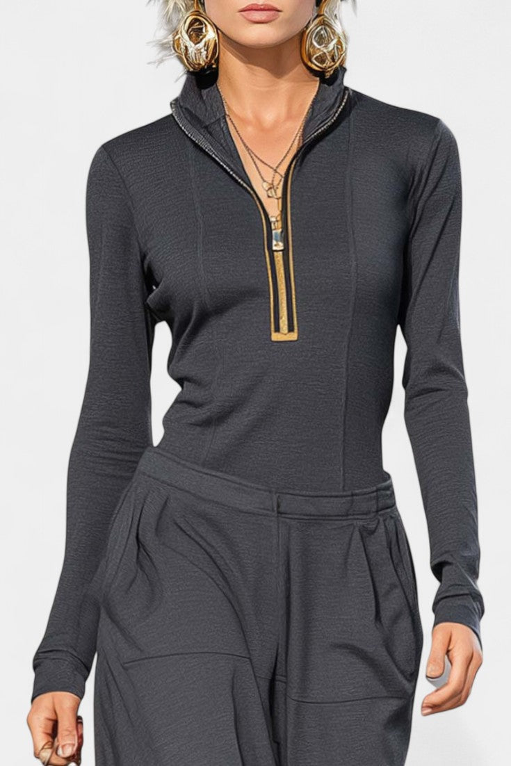 Azélina Ensemble Gris Foncé à Col Montant et Pantalons Amples