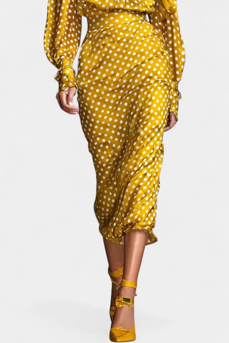 Seranya Ensemble en Satin à Imprimé à Pois et Jupe Midi Coordonnée