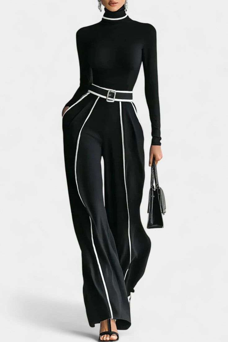 Kirralee Ensemble à Col Montant Contrasté et Pantalon à Jambes Larges