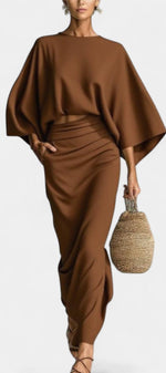 Marlon Ensemble à Manches Longues Décontractées et Jupe Longue Fluide