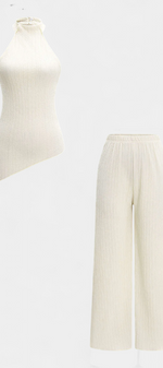 Pilarica Ensemble Top Halter Asymétrique et Pantalon à Jambes Larges
