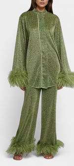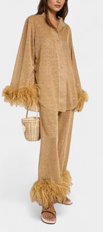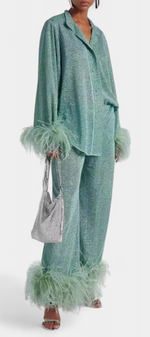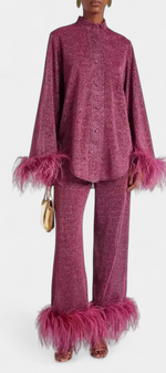 Audacieux et sophistiqué, l'ensemble Polina élève le quotidien avec un détail inattendu. La blouse à manches longues en tissu doux se combine avec un collier orné de plumes, apportant une touche avant-gardiste qui s'équilibre avec le confort des pantalons décontractés. Une proposition moderne pour se démarquer sans effort pendant l'automne et l'hiver.