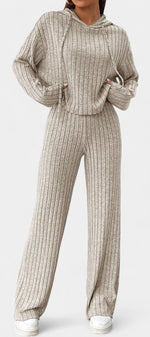 Federica Ensemble Long Rayé en Tricot à Capuche Ample