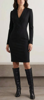 Athelina Robe Midi Noire Style Portefeuille Intemporelle