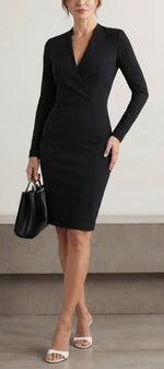 Élégante, fluide et impeccablement moderne, la robe Athelina revisite le style portefeuille dans une version noire épurée qui traverse les saisons avec grâce. Son décolleté en V délicat flatte la silhouette, tandis que les manches longues et la longueur midi offrent un équilibre parfait entre professionnalisme et féminité. Conçue pour épouser le corps sans le contraindre, elle accompagne chaque mouvement avec une allure naturelle et sophistiquée.