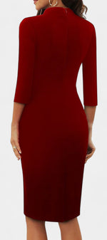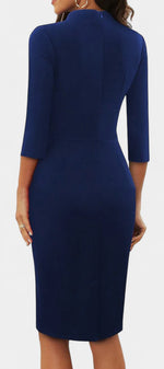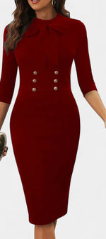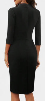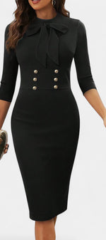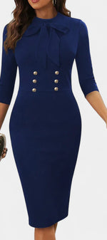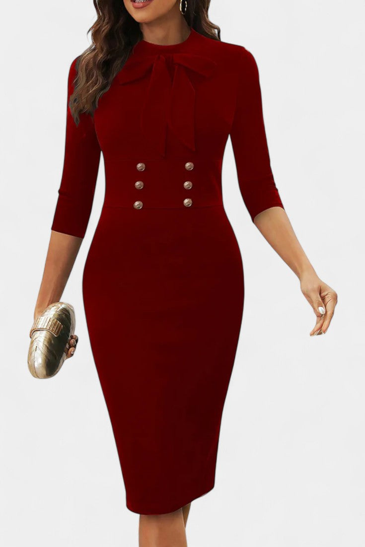 Une robe élégante et structurée, pensée pour sublimer l’allure professionnelle avec une touche féminine raffinée. Jesusa se distingue par sa coupe fourreau midi qui affine la silhouette, rehaussée de délicats boutons décorés d’un nœud qui apportent charme et distinction. Les manches trois-quarts offrent un équilibre parfait entre élégance et confort, faisant de cette pièce un essentiel du vestiaire workwear chic.