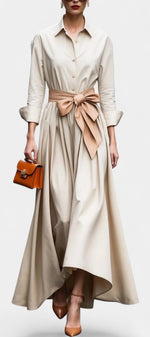 Lioren Robe Chemise en Sergé avec Nœud à la Taille