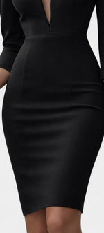 Audacieuse et résolument élégante, la robe Sia sublime la silhouette avec une ligne ajustée parfaitement maîtrisée. Son décolleté plongeant crée une allure affirmée et féminine, tandis que la taille marquée structure le corps avec précision. Les manches longues légèrement froncées aux épaules ajoutent une touche de caractère et d’élégance contemporaine, équilibrant sensualité et sophistication. Une pièce pensée pour celles qui aiment faire une entrée remarquée avec assurance et raffinement.